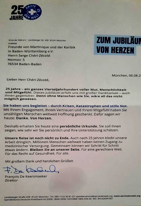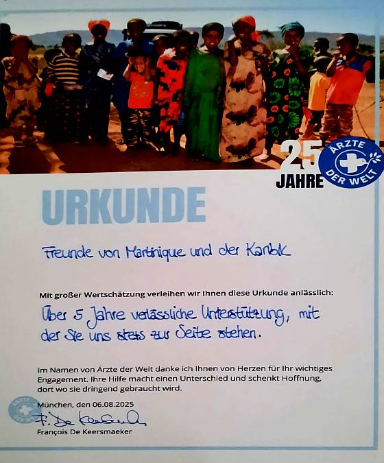 6-8-2025: Certificat de soutien de Médecins du Monde