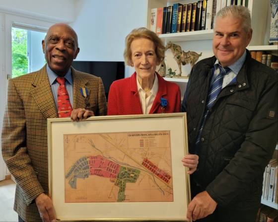 Bei diesem Besuch überraschte Sigrun Lang Serge Chéri-Zécoté, indem sie ihm einen wunderschönen alten Plan der französischen Cités, ein Zeugnis aus der Zeit der Präsenz der Trikolore-Truppen in Baden-Baden, schenkte. Diese Darstellung erinnerte Serge Chéri-Zécoté an seine jahrzehntelange Beschäftigung in der Garnison.